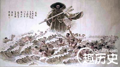 传说在帝尧时期,黄河流域经常发生洪水,庄稼被淹了,房子被毁了,老百姓只好往高出搬,再加上毒蛇猛兽伤人伤牲口,真叫人无法过日子。为了制止洪水泛滥,保护农业生产,尧帝曾召集部落首领会议,征求治水能手来平息水害。鲧被推荐来负责这项工作。鲧接受任务后,采用堤工障水,作三仞之城,就是用简单的堤埂把居住区围护起来以障洪水,九年而不得成功,最后被放逐羽山而死。