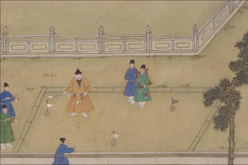 中国古代有一项类似于高尔夫球的运动,名为“捶丸”,顾名思义,就是用工具击打小球,捶丸就是以球杖击球入穴的一种运动项目。如果不放在世界范围内来看,捶丸的前身很有可能就是盛行于唐宋元三代的马球运动中的一个项目“步打球”,这个比较类似于现在的曲棍球,与马球很相似,只不过是不骑马,其他部分相差无几。