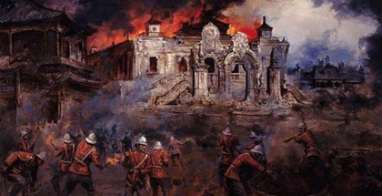 最后,在10月18日,英军指挥官、八世额尔金伯爵詹姆斯·卜鲁斯(James Bruce,他是恶名昭著的古希腊石雕收集者七世额尔金伯爵之子)下令,将圆明园付之一炬。在其后的两天时间里,士兵们被分派到各个宫殿、宝塔和其他建筑中放火。尤为惨重的损失是帝国的图书及档案馆(指文源阁——译者注),约一万零五百卷图书档案,包括有关中国历史、科技、哲学及艺术最为稀世及精美的著作,都在额尔金的大火中灰飞湮灭。