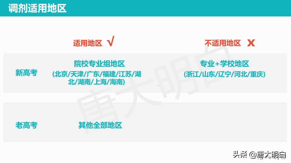 如下图。调剂适用于新高考的院校专业组地区(如北京、天津、广东等)和老高考地区,不适用于新高考的专业+学校地区(如浙江、山东等)。