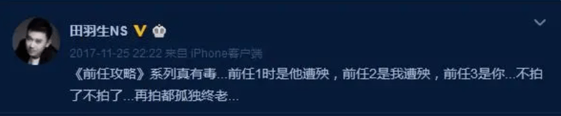当时有不少“前任”相关题材的电影都在蹭《前任3》的热度,导致导演田羽生直接发文:“没有前任4。”并直言《前任3》已经是终结篇了。然而时隔4年后,导演还是打脸了。