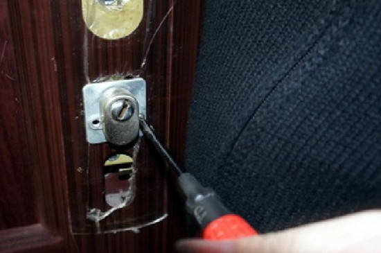 找一根铁丝或者坚硬一点、纤细一点的物品,将铁丝慢慢插入握把上方的小洞中,同时将把手往外面拉,将外面的盖子撬开之后,再用螺丝刀将内部的固定螺丝拆卸,此时等门锁只剩下斜舌时,用钳子将斜舌带动并同时开门。