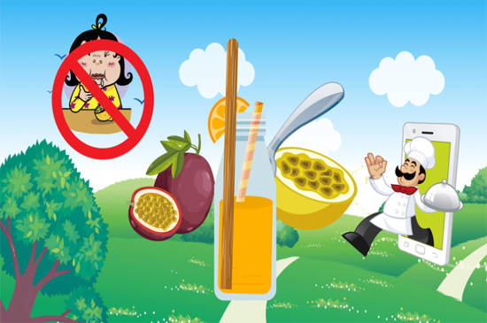 百香果最常见的吃法就是将其切成两半,直接用勺子挖果肉吃,但是口味较为酸涩,这种方法不适合吃不了酸性食物的人群使用。可以将百香果的果肉、果汁挖出来放在杯子中,加入一点白糖和蜂蜜,搅拌均匀后直接食用即可。