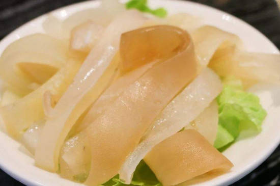 牛皮中含有胶原蛋白,因此还具有一定的美容养颜功效,不过炒制的牛皮口感没有煮牛皮好,因此很多人都会把牛皮熬煮成汤。牛皮不宜用食盐腌制,否则食盐会带走牛皮内的水分,造成牛皮口感变得更硬、更难以咀嚼。