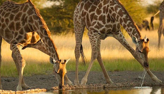 长颈鹿脾气温柔,群体之间谦和文雅,彬彬有礼。它们互相之间温情脉脉地相伴来去,互相之间靠得很近,互相照应,它们长长的腿经常碰在一起,这种情况通常会持续很长时间,但它们从不因为这种小事发生口角、顶撞。这种互相靠近既是出于一种温情,也是为着安全,一种温暖同时默默地传遍了集群中的每一只长颈鹿。相互之间常常以头颈相交,温柔而细心地交流着,像是一丛高大的芭蕉树,同根相生,相互守候,它们的举动那么随和、亲切、自然,完全配得上它们那美丽的外貌。