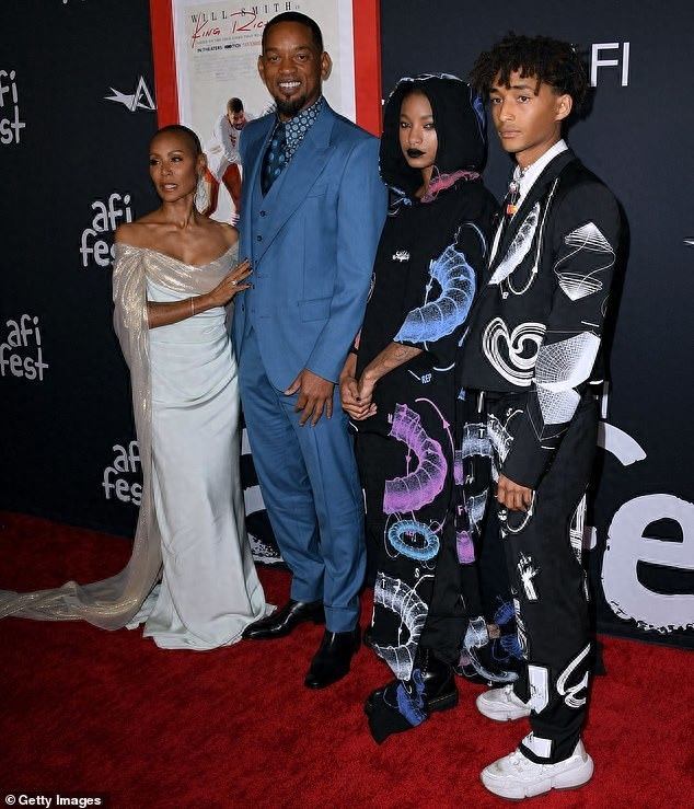 当地时间11月14日晚,威尔·史密斯带着他的妻子贾达·史密斯,和他们的两个孩子贾登和威洛,一起出现在好莱坞的TCL中国剧院,参加在那里举办的2021 年 AFI 电影节闭幕,观看由他主演的电影《国王理查德》。和现年53岁的威尔绽放出笑容所不同的是,23岁的贾登和20岁的威洛都摆出了冰山脸,仿佛是走在了T台上。