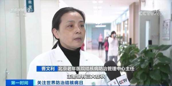 北京老年医院结核病防治管理中心主任 曹文利:主要是有三大症状,第 一个连续咳嗽两周以上, 这个是一定要先去筛查结核。第二个是低热、午后低热盗汗,也得需要筛查。第三个就是痰里边带血丝。