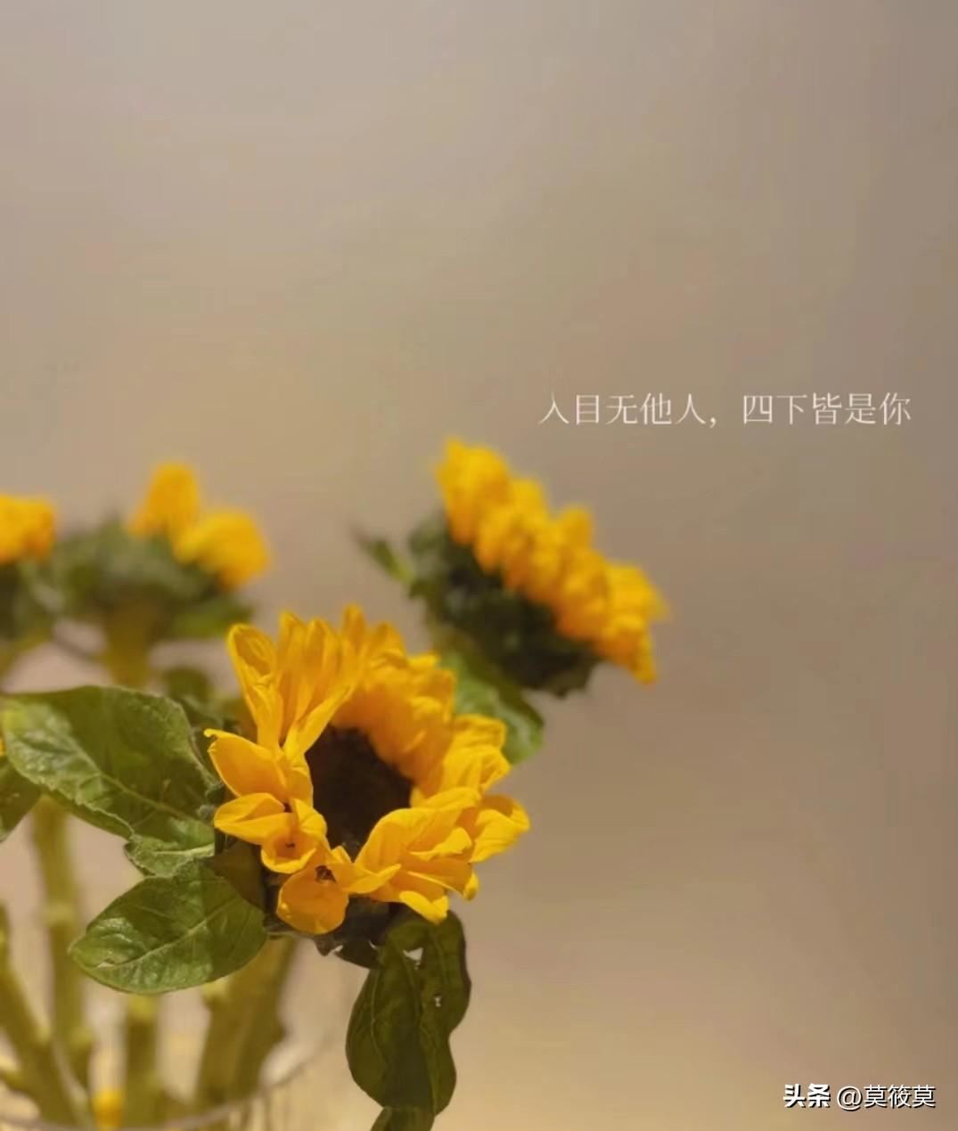 向日葵:信念、光辉、高傲、忠诚、爱慕,寓意是沉默的爱,代表着勇敢地去追求自己想要的幸福。