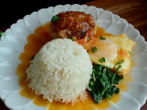 最后上一道茄汁狮子头米饭,这个饭是把米蒸好,也就蒸好白饭,然后做好茄汁狮子头,配在一起吃,我平时只吃半碗米饭,今天但是米饭就吃了满满一碗。连我那平时爱吃面的老公,每次吃这个米做的饭都会说:这个米确实香!狮子头的做法稍微复杂一点,我回头专门把详细做法发帖出来!