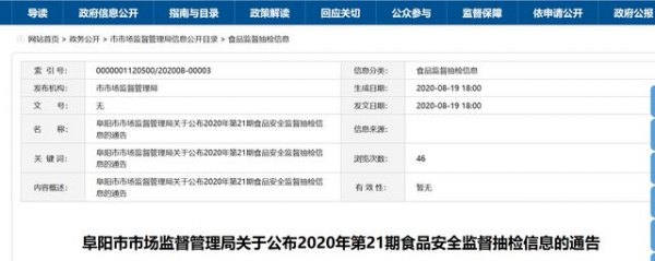 中国质量新闻网讯 (记者 徐远官) 8月19日,安徽省阜阳市市场监督管理局公布2020年第21期食品安全监督抽检信息。近期,阜阳市市场监督管理局组织了糕点、酒类等监督抽检。本次共抽检40批次食品,全部合格,其中涉及20批次酒类产品。