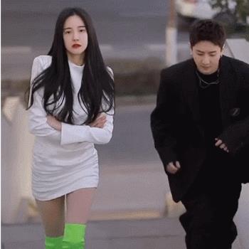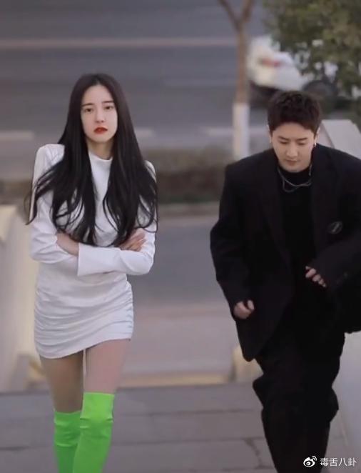 晒出的视频中,她穿着超短裙和长筒靴,在前面上楼梯,后面一身黑衣的男生冲上来直接牵起她的手,然后拉着她继续走。内容很短,但传递出了从独自一人到有人陪的变化。