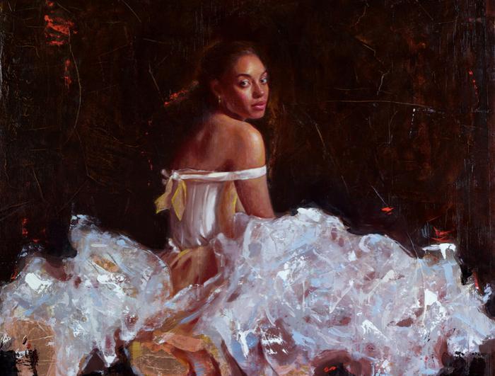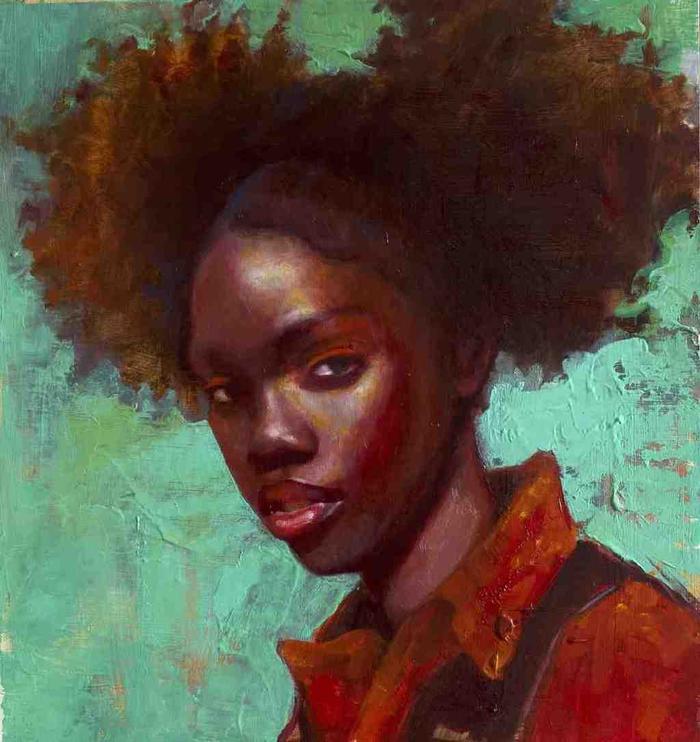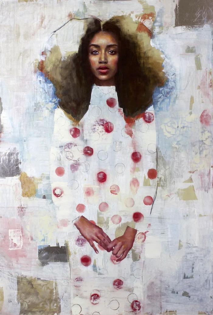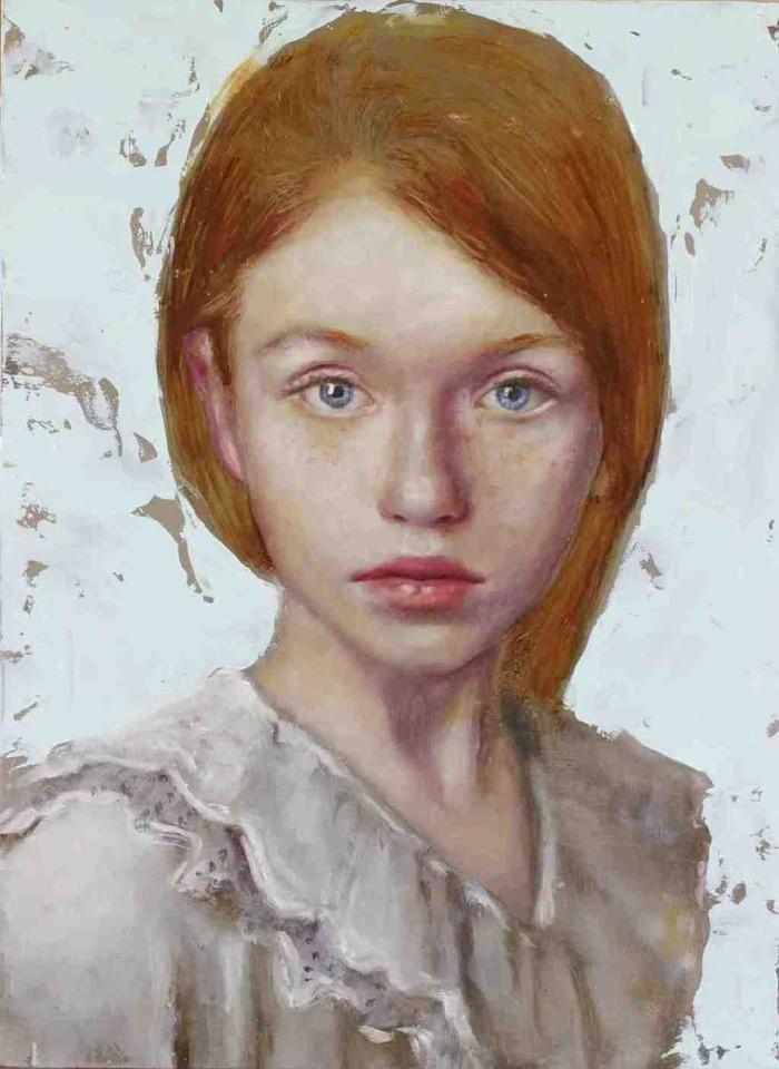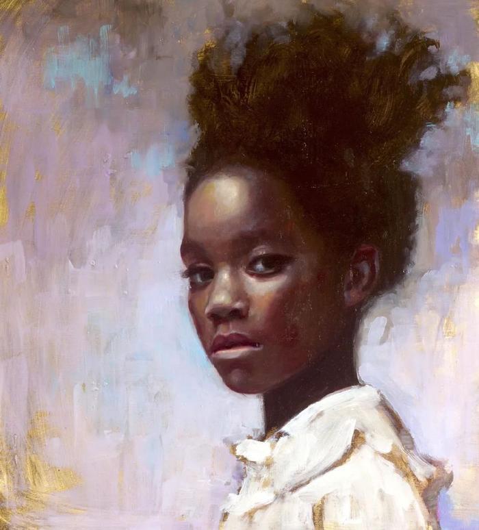 这位女画家是一位肖像画家,与其他的肖像画家不同之处就在于,她作品中的主角都是女性,除了女性这个特征外,作品中的女孩们没有过多丰富的表情,目光直视前方,显示出女孩们的自信。