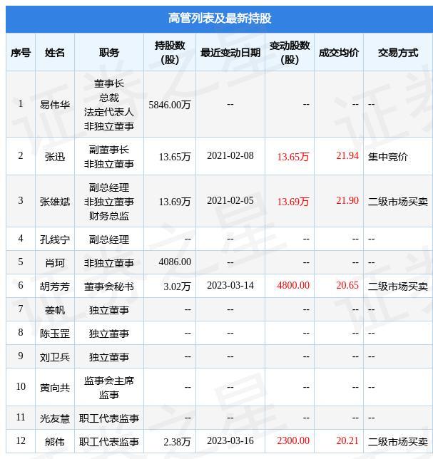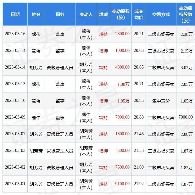 证券之星讯,根据3月17日市场公开信息、上市公司公告及交易所披露数据整理,沃格光电(603773)最新董监高及相关人员股份变动情况:2023年3月16日公司监事熊伟共增持公司股份2300.0股,占公司总股本为0.0013%。变动期间公司股价下跌4.12%,3月16日当日收盘报20.25元。