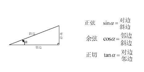 在初中数学里,锐角α的正弦、余弦、正切都是在直角三角形中,利用直角边与直角边之间的长度之比或直角边与斜边之间的长度之比定义的。