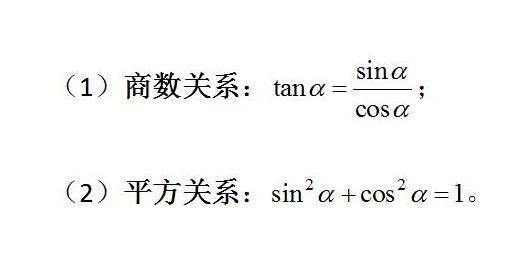 1、商数关系:任何一个角α的正切值,都等于角α的正弦值比上角α的余弦值。