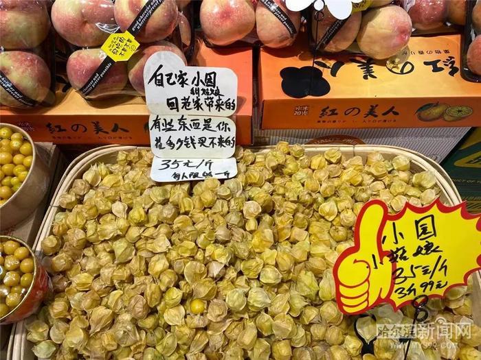 在道里区爱建某水果店记者看到,菇娘每斤售价35元,每人限购一斤。店主说,这批次菇娘和市面上卖的不同——不是大棚里大规模种植,是自家小园种的,特意从双城老家背回来的。记者发现,店内水果销售价格最高的就是菇娘,但销量着实寥寥。店主说,“虽然写限购一斤,这么贵的价格,买的人确实少”。
