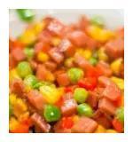 食材:火腿、速冻蔬菜丁、盐、白胡椒碎、淀粉、味精