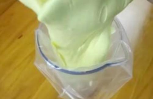 然后我们准备一个裱花的,如果没有裱花袋的话,也是可以准备一个干净的保鲜袋,把准备好的面糊倒在保鲜袋里边在一角剪出一个小孔。