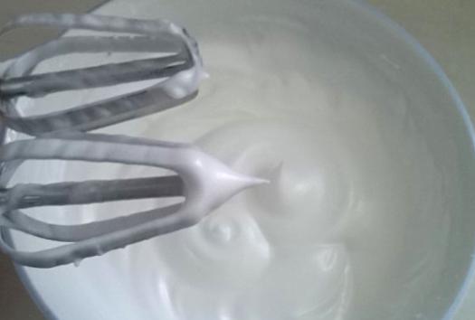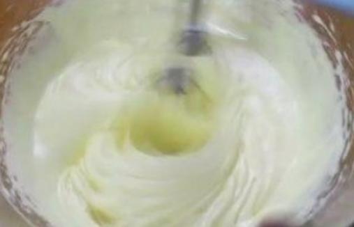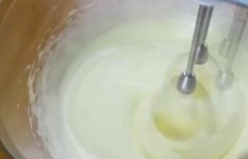 等到打发至非常的细腻的状态,鸡蛋糊提起来就算滴落以后也不容易消失,而且还具有一定的流动性的时候就可以了。