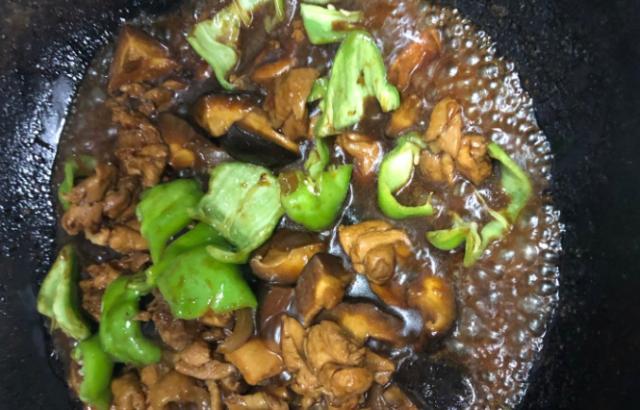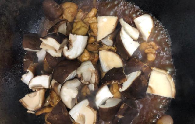 再把我们煎好的香菇放到肉到锅里边再加入蚝油,煮上10分钟的时间,如果是干香菇的话,那么我们也可以适当的延长炖煮的时间。