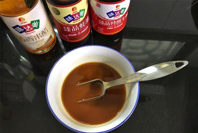 6、准备好一碗糖醋汁,碗中加入2勺生抽,1勺蚝油,2勺醋,1勺番茄酱,1勺白砂糖,1勺淀粉,4勺清水搅拌均匀后糖醋汁就做好了。