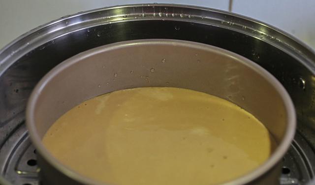 8、放入蒸锅,大火烧开,然后转小火再蒸30分钟就可以关火了,时间到了打开锅盖取出来,松软好吃的木薯粉马拉糕就做好了。