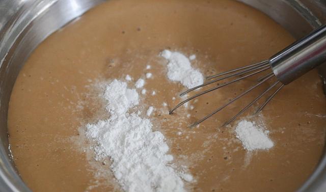 5、再加入泡打粉和小苏打,用打蛋器搅拌均匀。