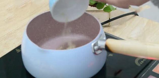 准备好了这些东西之后,我们就要把这些砂糖放到锅里面,然后再加一些清水也不用太多,接下来我们把锅下面的火给打开,等到这些东西都烧热了,并且他也已经完全融化的时候,再把准备好的粘米粉也都倒进去,倒的时候大家要用筷子继续搅拌着,接下来倒完了再加入一些小麦淀粉和清水,最终会变成下面的这种糊状。