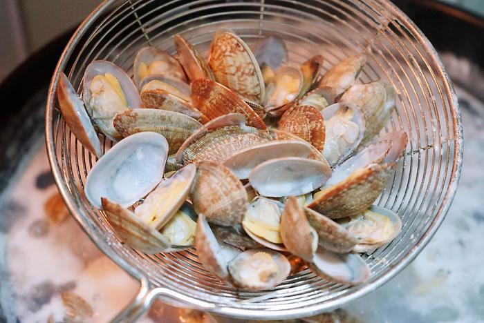 步骤三:起锅烧水,冷水就把花蛤放到锅中,然后煮开,之后再继续煮三分钟左右,让花蛤都充分的张口。