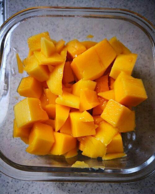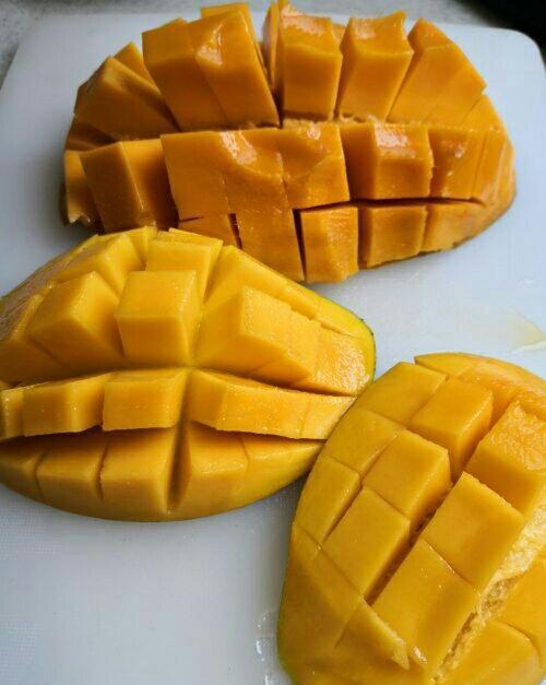 准备食材主料芒果几个椰奶适量吉利丁粉适量辅料白糖适量开始制作步骤一先把芒果准备出来。芒果最好选用比较大的,这样果肉也比较充足。吃的时候也比较满足,把芒果从中间对半切开,取出果核,在果肉上画井字然后将果皮向外翻,就可以将所有果肉都翻出来。