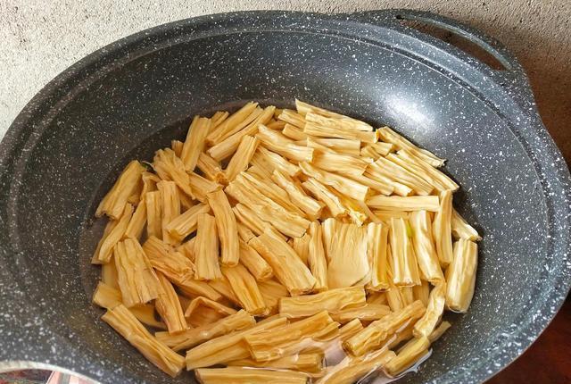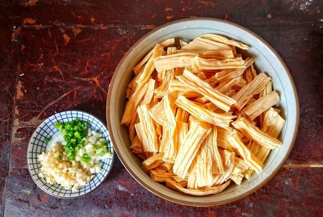 啰嗦几句:腐竹一定要用凉水浸泡,不要为了省时间用热水,热水浸泡出来的腐竹,嚼起来软软绵绵的,没有任何的口感,如果特别的赶时间,也可以用温水,不过相比冷水浸泡的口感稍差一些本文由小圆的厨房分享原创,未经允许不得转载,感谢阅读,想了解更多的家常美味菜谱,请点击头像关注我,如果你喜欢我的文章,请收藏、评论、点赞、转发给更多的小伙伴,如果你有更好的做法想要分享,在下边留言,一起交流下厨房的乐趣吧!