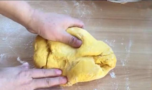 南瓜馒头2、南瓜蒸好之后,取出来,倒入大碗内压成泥,放至不烫手之后加入3克酵母粉,搅拌化开。再加入适量的面粉搅拌均匀,和成一个不沾手的面团,面团稍微和的硬一些,充分揉均匀,这样做出来的馒头才会细腻。