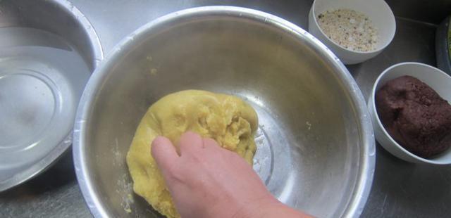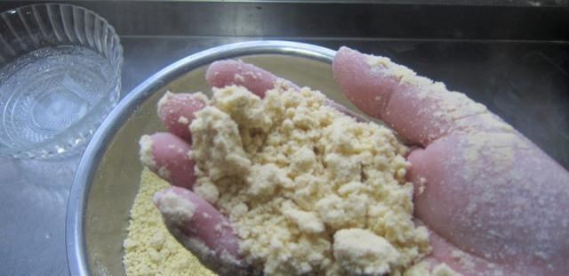 黄米油炸糕的做法1把温水一点一点加入面粉内