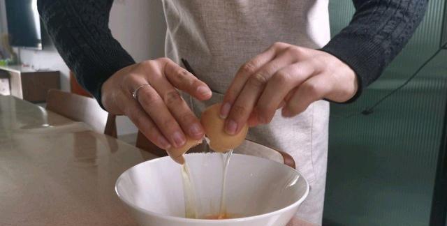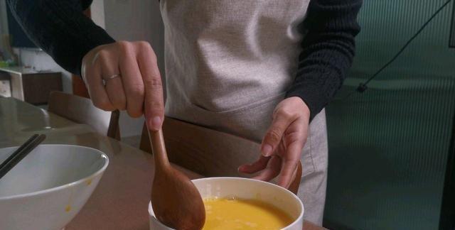 1.我家是两个人吃,所以在准备的时候3个鸡蛋就够用了,将鸡蛋打入碗中,再加入少许的盐进行调味,再朝一个方向搅拌均匀。