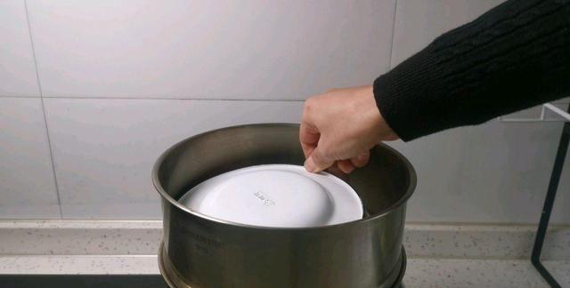 4.起锅烧水,等锅中水开后,将鸡蛋糕放进锅中,大家再放的时候可以用保鲜膜盖上,上面扎几个小孔,或者用盘子盖上,我一般喜欢用盘子盖上,蒸12分钟,这个时间还是看你鸡蛋放的多少。