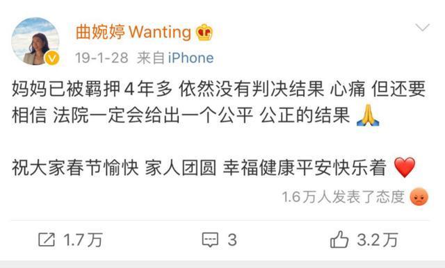 “云孝子”曲婉婷,母亲被羁押6年不敢回国一次,发文惊动中纪委