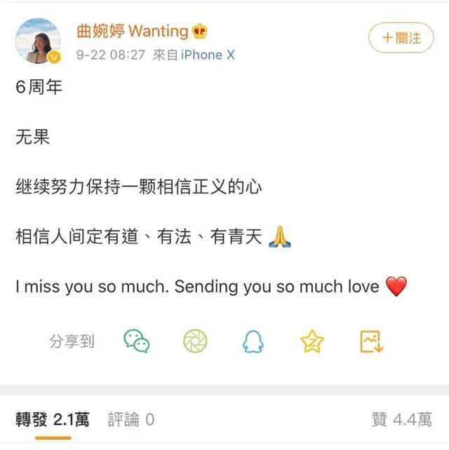 这次的起因是,曲婉婷发文,“相信人间有青天”。这很快激怒了中国网友。