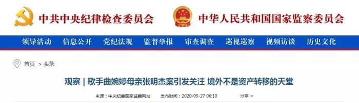 歌手曲婉婷近日连续登上热搜,被网友群攻还不算什么,今日又惊动了中纪委。中央纪委国家监委网站刊发文章《观察 | 歌手曲婉婷母亲张明杰案引发关注 境外不是资产转移的天堂》,为整个事件盖棺定论。