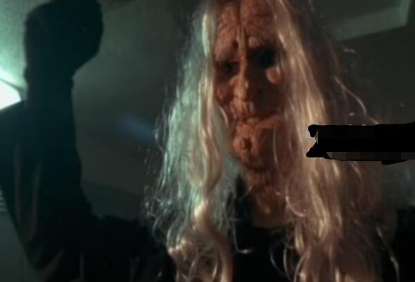 这个面具看起来很恶心,整个面部布满了皱纹,而且嘴巴已经完全的收缩在了一起,眼珠也没有了,只有一个空洞洞的眼眶,配上电影《惊魂摄魄》中的桥段,可谓恐怖至极。当这个干尸模样的丑恶的老太婆面具出现在眼前,再配上她那具阴阳怪气语调的恶“快来奶奶这儿”,真的可以把人吓尿!