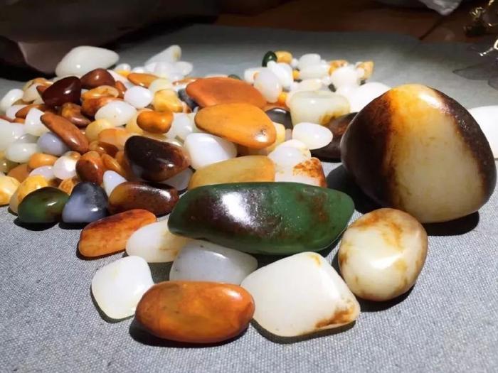 独籽,不同于山料,找到矿脉后可以爆破开采,独籽是在玉龙喀什河和喀拉喀什河两条流域附近,如:渠首、总闸口、玛丽艳这些矿点。