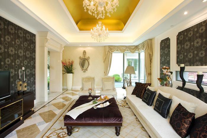 仿古工业风格,电子纹身店装修效果以其鲜艳色彩的搭配带给人视觉上的冲击感,整个房间的地面铺设着米黄色的颜色鲜艳的瓷砖拼贴地板,米黄色的墙壁天花板带给人温馨舒适的视觉体验,奠定了整个房间淡雅清新的基调。房间中间摆放着黑色的皮质靠背沙发,黑色的实木组合式橱柜环绕在房间四周与之相搭配,发出紫红色灯光的天花板吊灯又让人倍感精致典雅。