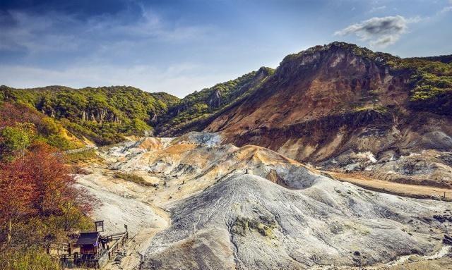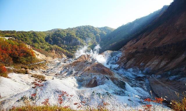 空气中弥漫硫磺味,之前去箱根和草津温泉也是这个味道 ,所以没有什么不适应。一路向北,果然北海道的秋色更加浓郁些。天色渐暗,登别的乌鸦也多起来,成群起飞,远远望去,黑压压一片。