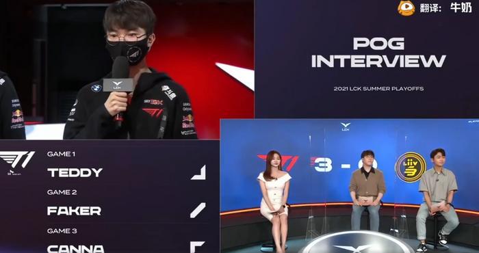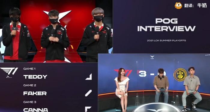 在比赛结束之后,三位拿到了POG的SKT选手也是接受了主持人的采访。在采访过程中,主持人询问了Faker对于今天自己的表现是否满意,对此Faker回应称“虽然比之前比赛的状态好很多,但是还没有发挥100%的实力,感觉可以打得更果断一些,还有一些遗憾的地方”。