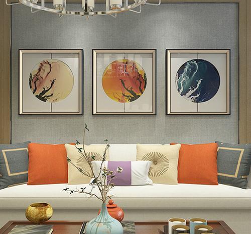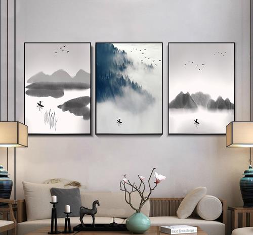 新中式意境山水装饰画玄关禅意壁画客厅国画挂画水墨三联画