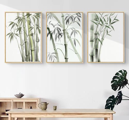 新中式禅意客厅墙画餐厅挂画国画竹子画装饰画小清新四联画