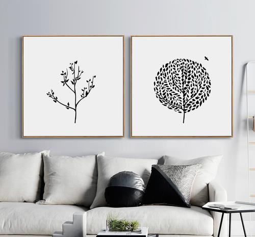 树枝孤鸟黑白客厅装饰画北欧简约三联创意春夏办公室禅意壁画