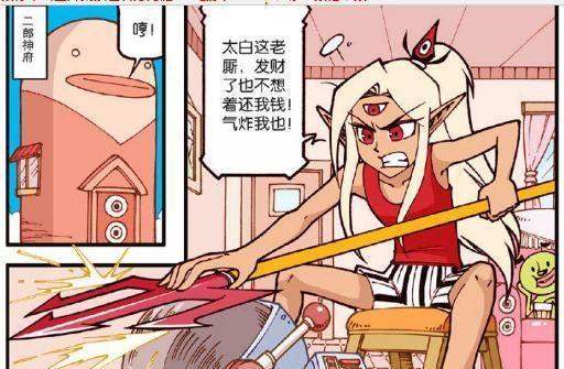本来太白就打算大赚一笔好还二郎神的债,结果二郎神也是只听了半句话,还以为太白闷声发大财,却假装没有能力还自己钱,气得二郎神回家立马磨了三叉戟,殊不知窗外也被听了半句话