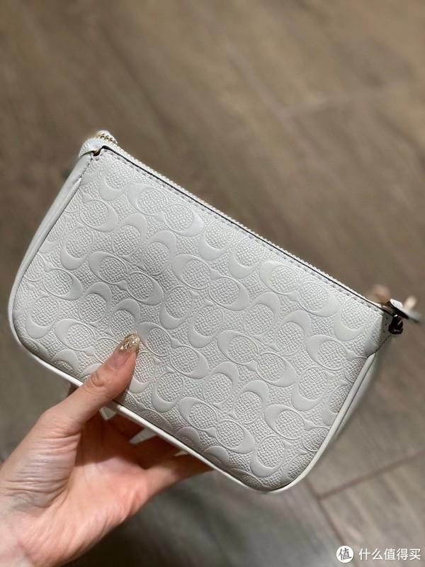 如今复古风潮越来越重,本来被各大品牌玩出花样的麻将包现在也逐渐返璞归真了,这款coach就是最好的证明,没有过多图案的设计,浮雕设计的老花logo配上金色链条,显得奶白色特别清新,简单的品牌logo用的是烫金的风格,整个包的设计看上去就是特别协调,让人感觉舒服。