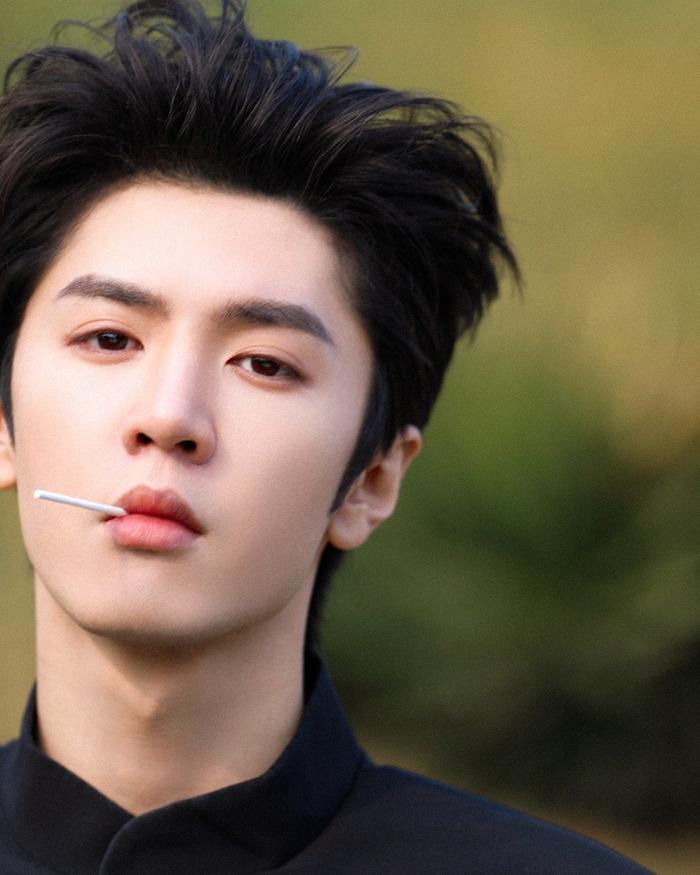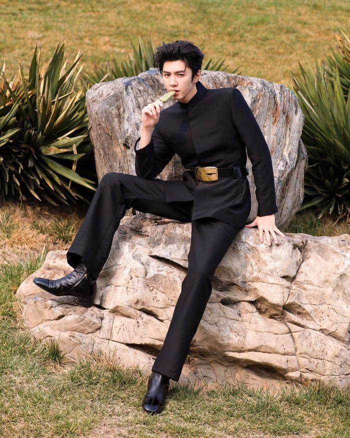 黑色立领西装标致有型,手拿棒棒糖和冰棍瞬间反差,雅痞小少爷的感觉立刻击中我,不过...#陈哲远你的绿豆冰棍化了#!!