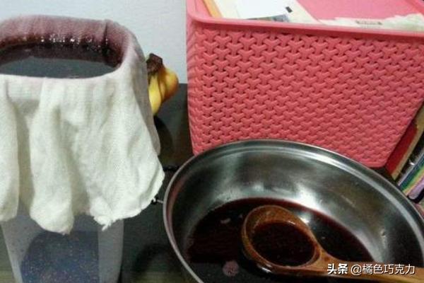9、将准备好的多层纱布制成一个小口袋,再把葡萄酒给过滤一遍。
